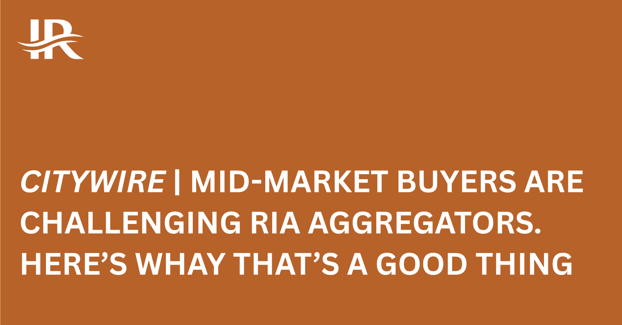 For years, the M&A narrative in the RIA space has centered around the rise of large, usually private equity-backed aggregators.